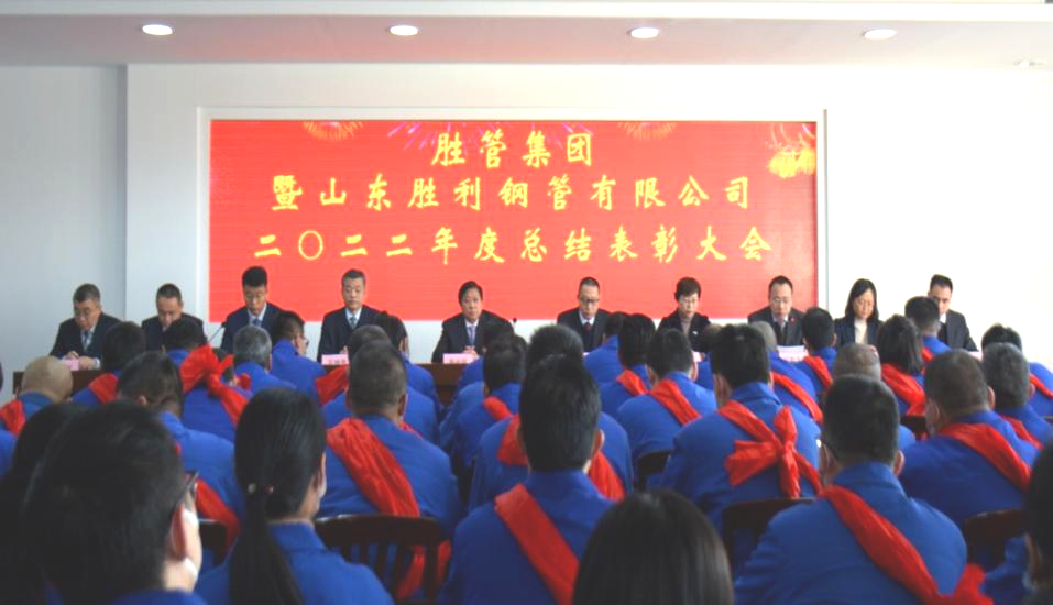 ?? 2023年1月7日上午,勝管集團(tuán)暨山東勝利鋼管有限公司2022年度總結(jié)表彰大會在集團(tuán)四樓會議室隆重召開。勝管集團(tuán)經(jīng)理層、山東勝利鋼管有限公司中層以上管理人員、員工代表及受表彰人員參加了本次會議。