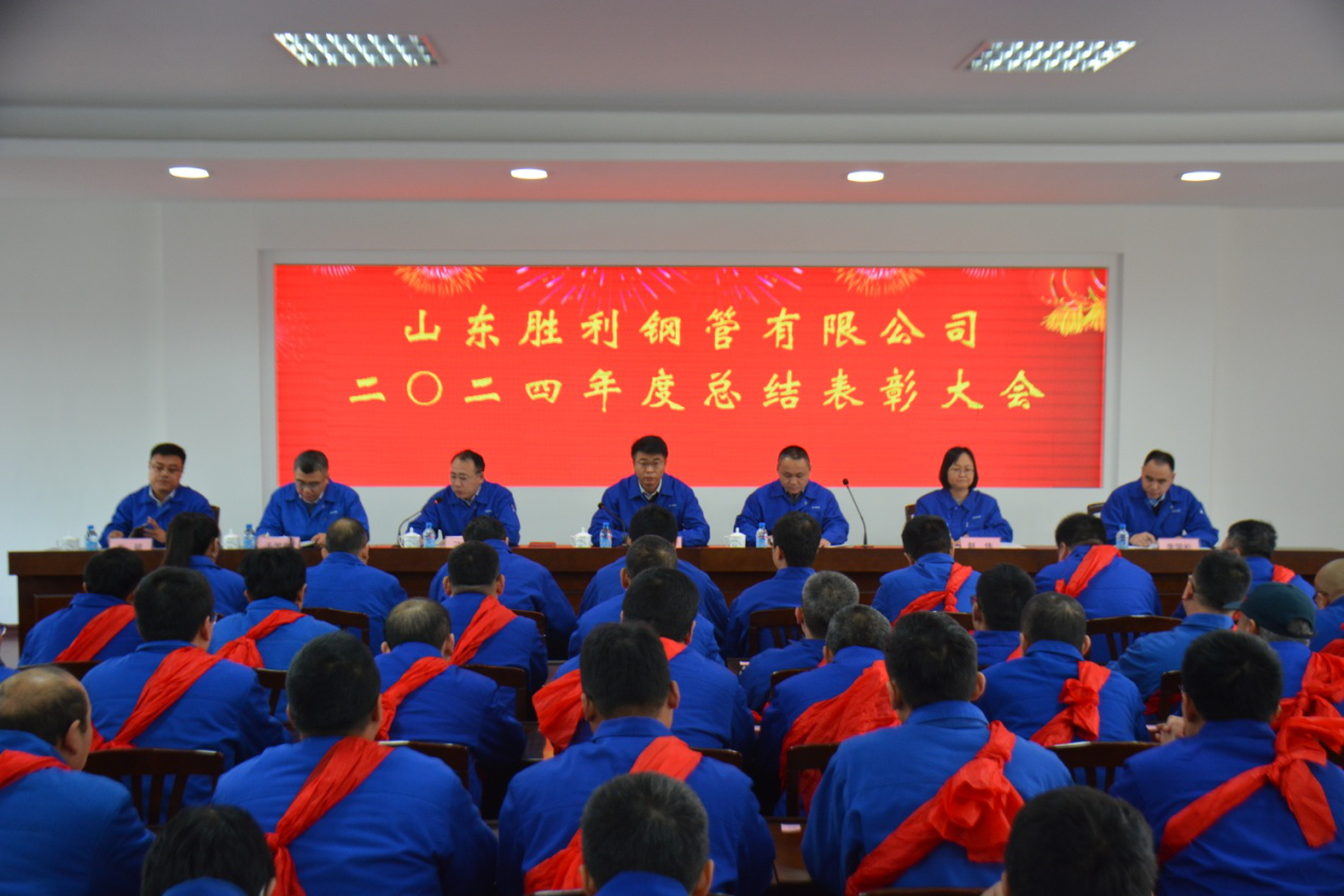 會(huì)議由公司黨總支書記刁有大主持,山東勝利鋼管有限公司副總經(jīng)理趙偉宣讀了公司對先進(jìn)集體和個(gè)人的表彰決定。山東勝利鋼管有限公司總經(jīng)理張圣光向大會(huì)作題為《新征程砥礪奮進(jìn),新使命擔(dān)當(dāng)作為》的工作報(bào)告。報(bào)告回顧了公司2024年的主要工作,總結(jié)了2024年取得的經(jīng)營管理成果,分析了工作中存在的不足,并對2025年的工作做了規(guī)劃。